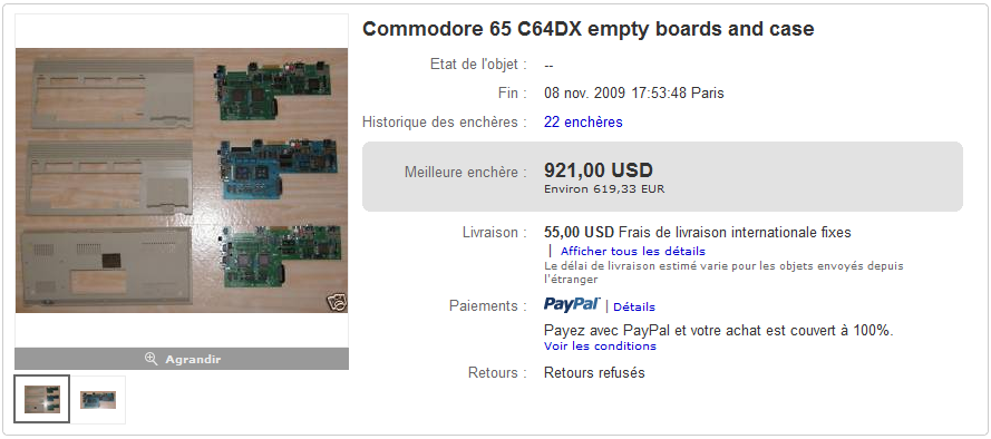 Dans la série “les ventes les plus folles sur eBay”… Trois cartes-mères vides et un boîtier et demi de Commodore 65 (alias Commodore 64DX) vendus pour 921$!